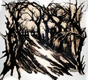 Japantusche auf Folienkarton