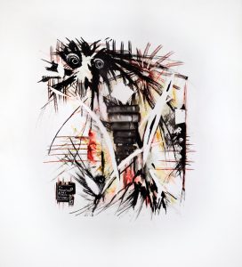 Japantusche auf Folienkarton. Stil: „Weiße Hieroglyphen“